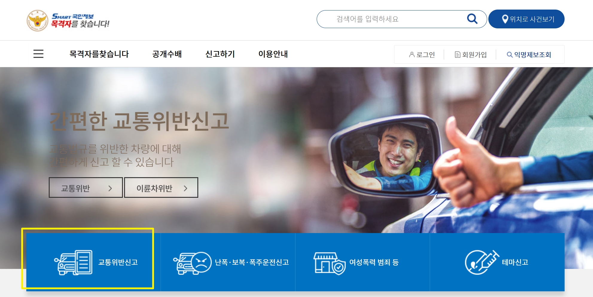 운전하면서 위험한 순간들을 목격하신 분은 해당 홈페이지를 통해 간편하게 신고할 수 있습니다.