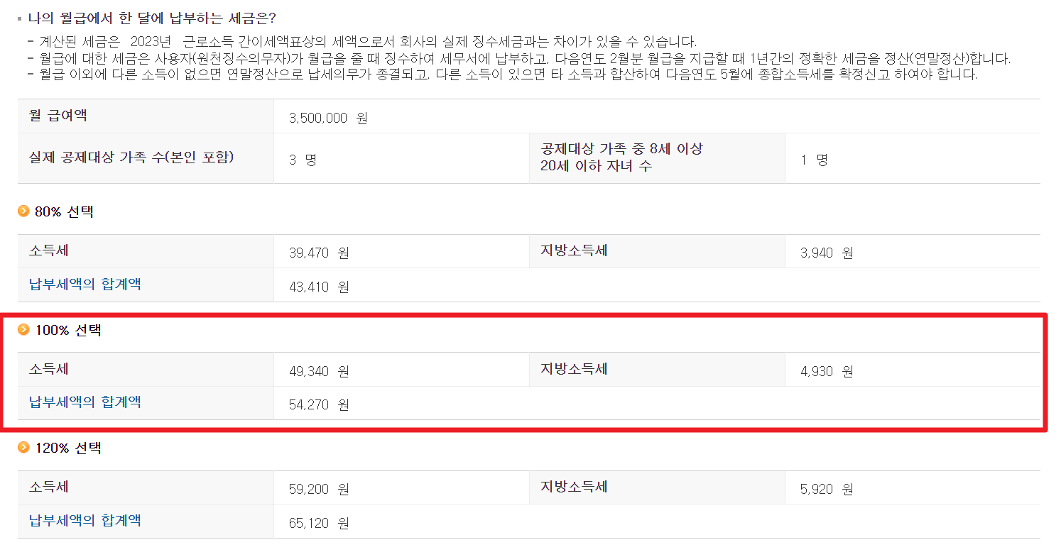 어느정도의 근로소득세를 내야 하는지 계산을 통해 체크해보시기 바랍니다.