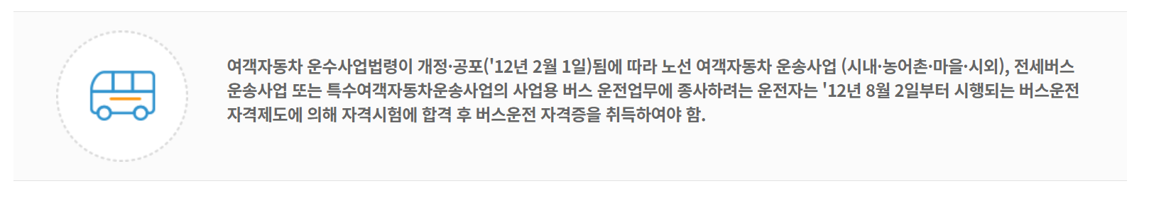 버스운전을 하기 위해서는 자격증을 취득해야하는데요, 이는 자격시험을 통해 취득할 수 있습니다. 아래와같이 운수사업법령이 개정됨에 따른 시험인데요, 과연 어떻게 준비해야할까요?
