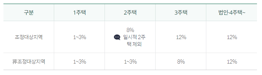 아래 2주택이상자의 취득세율은 최대 12%까지 적용되는 것을 확인할 수 있습니다.