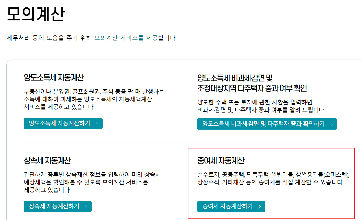 증여세 모의계산기는 꼭 현금아니고도 부동산이나 기타 재산 등의 증여세를 직접 계산해볼 수 있다는 점에서 큰 장점이 있습니다.