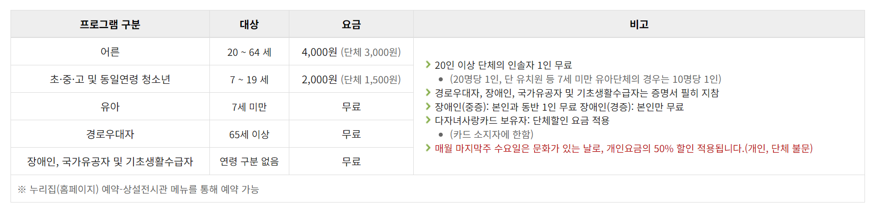 보통 관람료는 무료로 진행되지만 특별한 전시에 한하여 유료로 진행되기도 합니다.