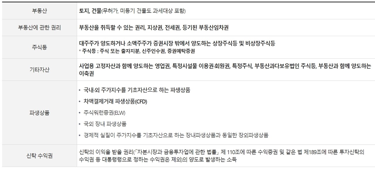 양도소득세 과세대상