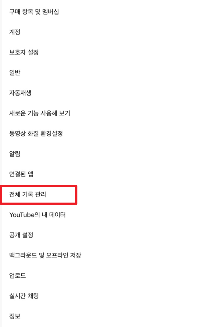유튜브 앱 내에서 계정 클릭 > 설정 > 전체 기록 관리 > 유튜브 기록 저장중 > 시청한 유튜브 동영상 포함 & 유튜브에서 검색한 내역 포함 > 일시중지