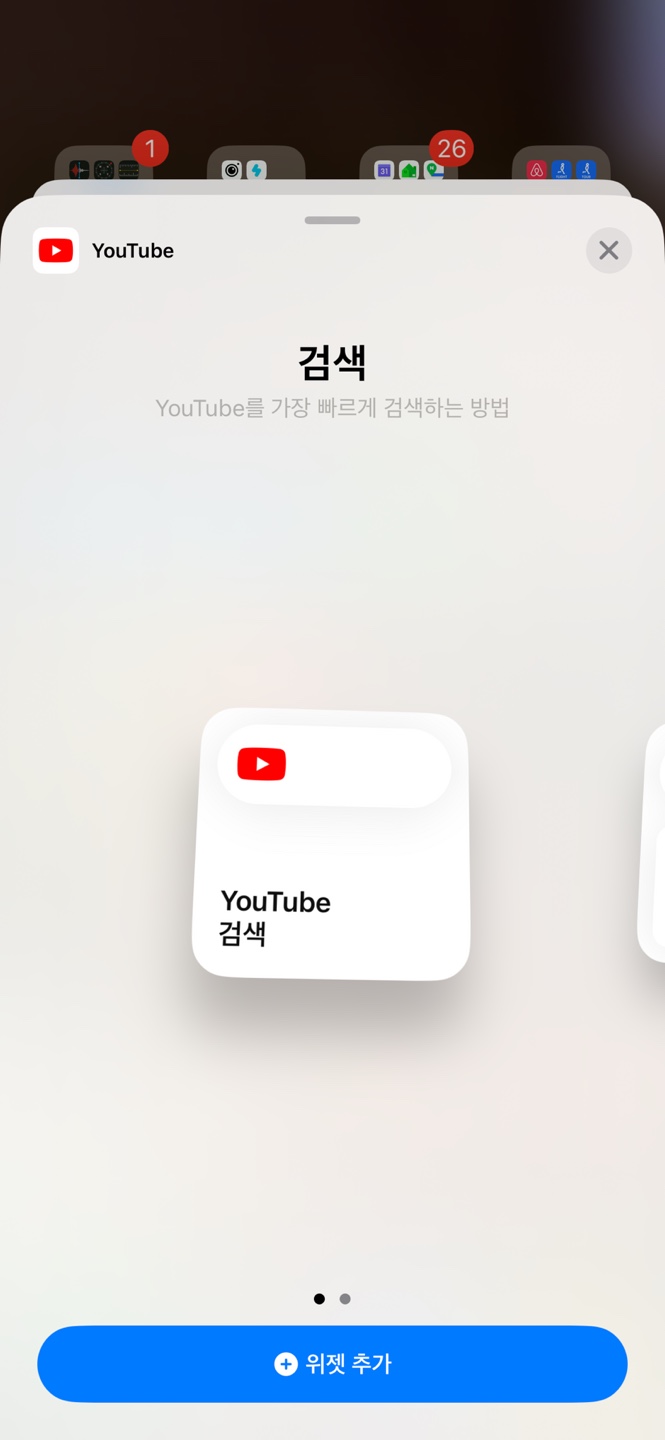 이와같이 유튜브 위젯을 홈화면에 드래그할 경우 모바일 환경에서도 간편하게 유튜브 바로가기를 생성해낼 수 있습니다.