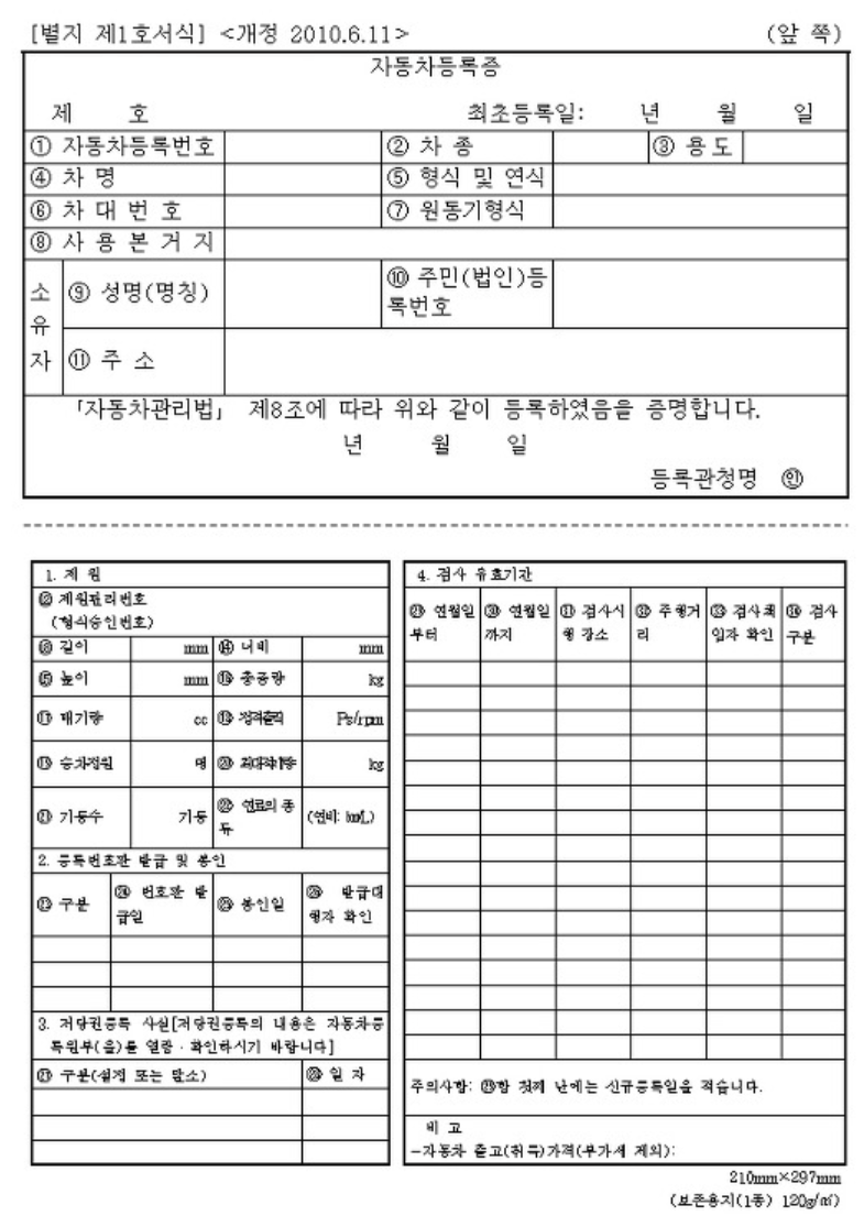 자동차 등록증은 새로운 차량을 매매하거나 할 경우 차량을 등록하면서 자동차에 대한 세부적인 내용이 적혀있는 문서입니다. 보통 우리는 자동차등록증을 항상 지참하고 다니는데요,