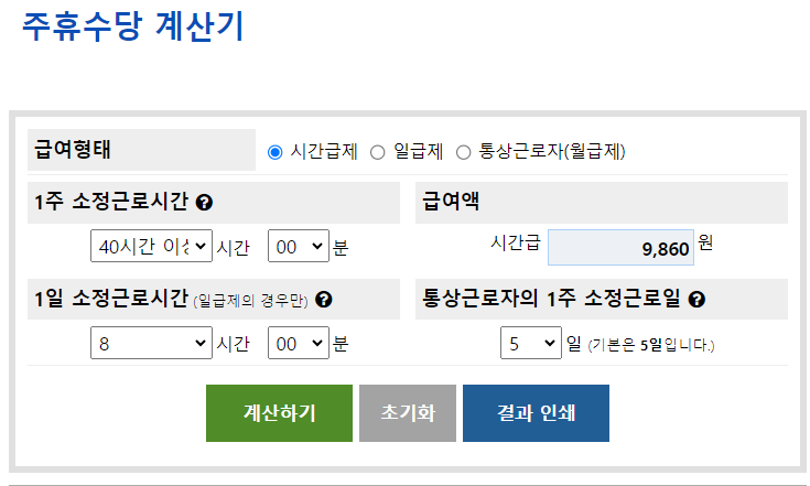 주휴수당을 받은 분들은 내가 받고있는 임금이 제대로 지급되고있는지 궁금하실 수 있습니다. 지금부터 주휴수당 계산기를 알려드릴텐데요 해당 계산기를 이용해보시기 바랍니다.