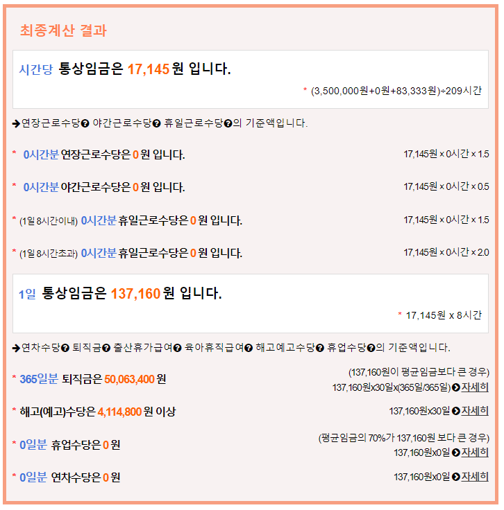 우리는 통상임금을 위와 같이 계산식을 이용하여 계산할 수도 있지만 요즘엔 계산기로 구할 수도 있습니다. 아래 제공하고 있는 통상임금 계산기를 이용해보시기 바랍니다.