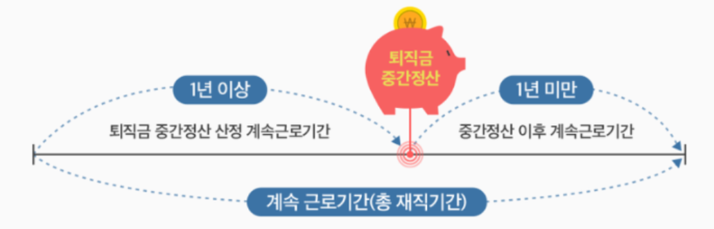 만약 퇴직금을 중간정산받았다면 그 이후의 퇴직금 산정은 아래와 같이 정산합니다. 이미지를 확인 후 퇴직금 정산 개념을 확인해 보시기 바랍니다.