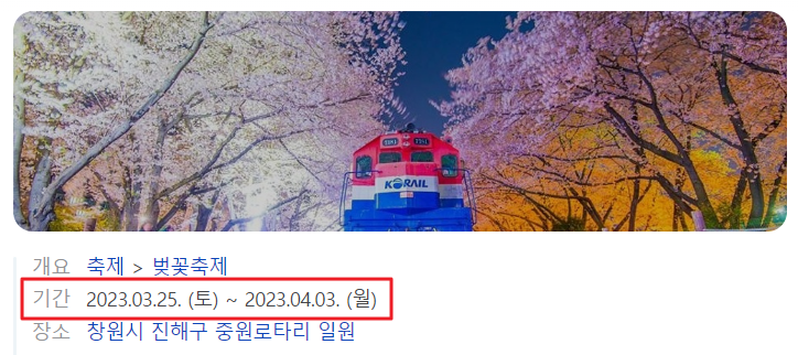 지난 해 창원 진해군항제에서 매년 열리는 벚꽃 축제는 3월 25일 경이었는데요, 올해는 이와 같이 벚꽃 개화시기가 빨라진 이유로 인해 조금 더 이른 시기에 개최할 예정입니다.